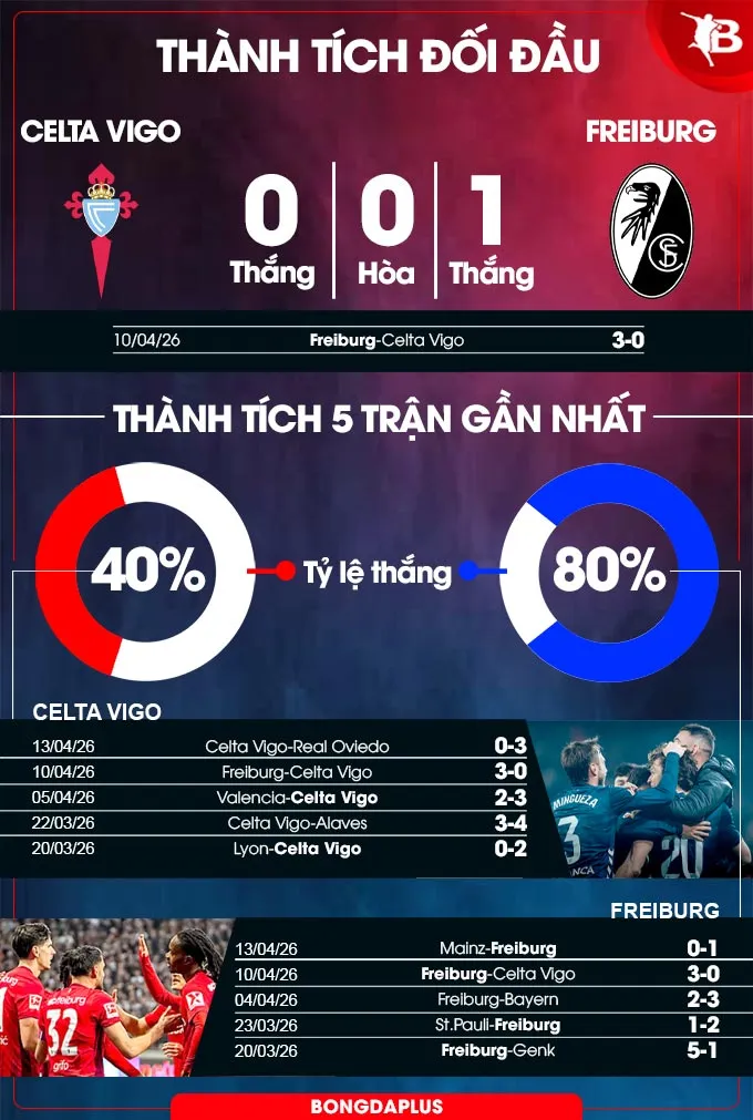 - Bàn thắng muộn: 6/8 trận gần đây của Celta Vigo chứng kiến bàn thắng được ghi từ phút 75 trở đi. Freiburg cũng không kém phần kịch tính với 5/6 trận vừa qua có bàn thắng trong khoảng thời gian này.