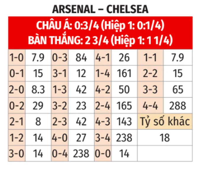 - Cả hai cùng ghi bàn: Đây là kịch bản phổ biến. 5/7 lần gặp nhau gần nhất, 9/11 trận của Arsenal và 11/13 trận của Chelsea đều chứng kiến cả hai đội cùng có bàn thắng. Khả năng giữ sạch lưới của cả hai đều không cao trên sân nhà/sân khách.