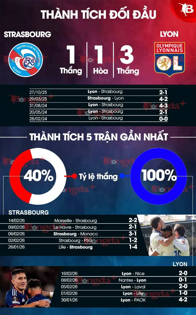 Trong khi đó, Strasbourg đang thể hiện sự thiếu ổn định rõ rệt với kết quả 1 thắng, 1 hòa và 2 thua trong 4 trận gần nhất. Sự mất tập trung trong hiệp 1 là lỗ hổng lớn mà Lyon hoàn toàn có thể tận dụng để hướng tới chiến thắng thứ 14 liên tiếp và thúc đẩy mục tiêu Top 2 Ligue 1.